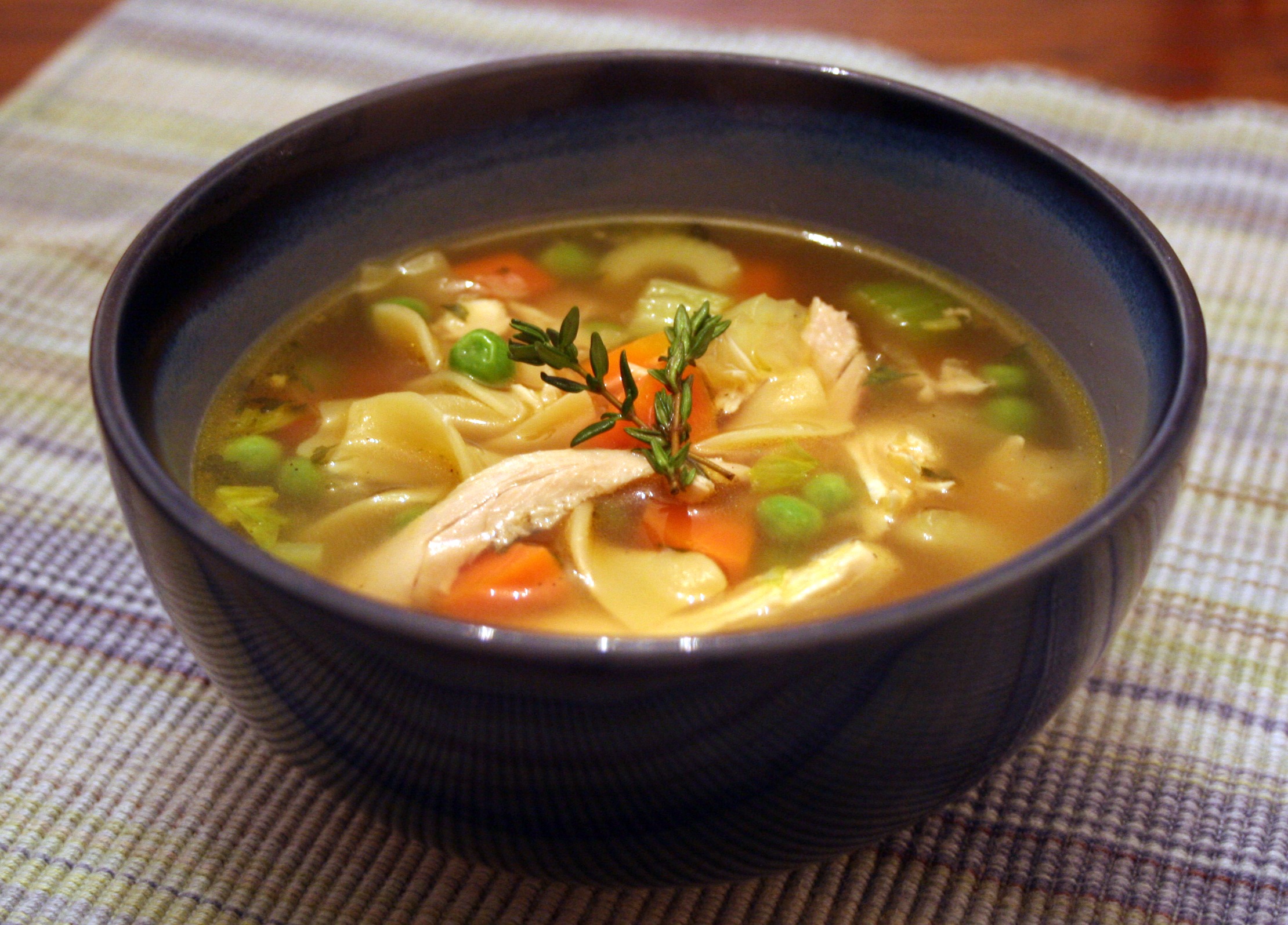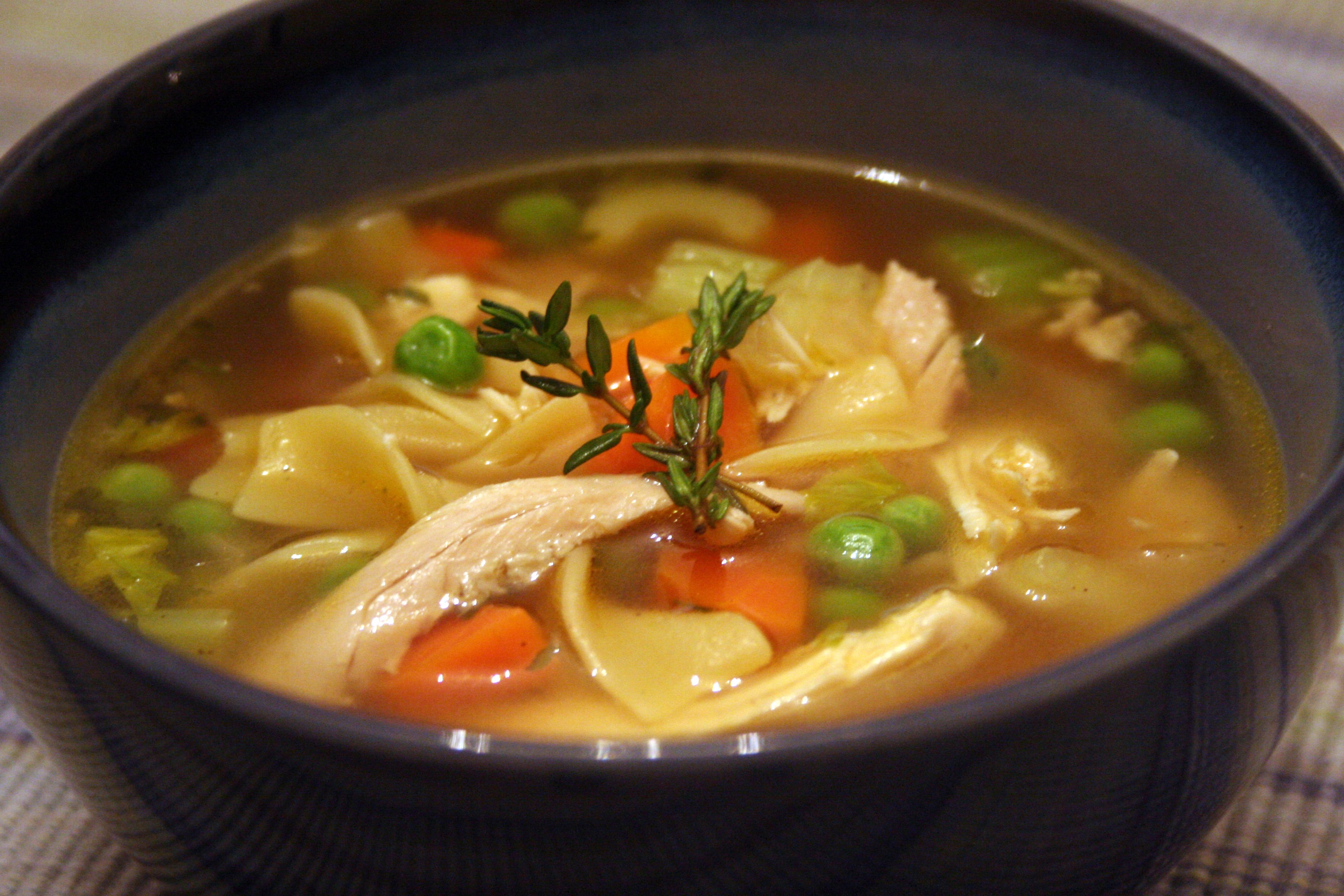 Poor M is sick with the flu, but thankfully the fever and headaches haven’t made him nauseated. I asked what he’d like for dinner and of course, he requested chicken noodle soup. “Great” I thought…I always want to go the extra mile (as much as possible) when he requests something, and I really didn’t feel like making stock from scratch…it takes too long. This method I used seemed like a good substitute for it. I took a little help from the store with some stock in a box and doctored it up a bit to cook the chicken, which enriched the flavor and richness. This took more effort than I originally wanted to put into it (the rainy, cloudy weather makes me lazy) but it was so worth it because the whole family enjoyed eating it and the leftovers will taste even better. Thanks for reading, enjoy!