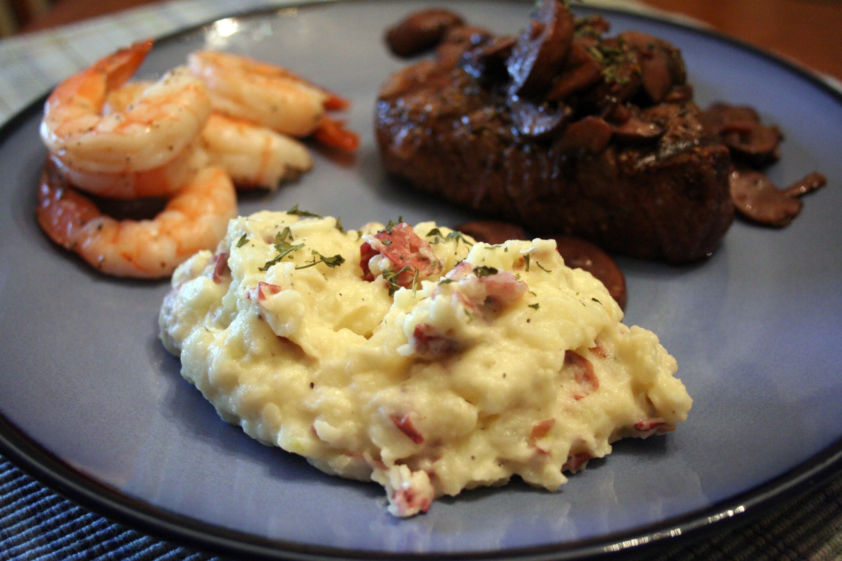 Meat and potatoes – every red-blooded, American man’s favorite combination, right? Well, this meal was meant for the hubs Father’s Day dinner…we and our lazy butts never got around to going to the store. So, better late than never! He requested filet mignon, roasted shrimp cocktail and roasted garlic mash. The mushrooms are for me, however because the man doesn’t eat fungus! I’ve never had steak and sautĂ©ed mushrooms so now is good a time as any.