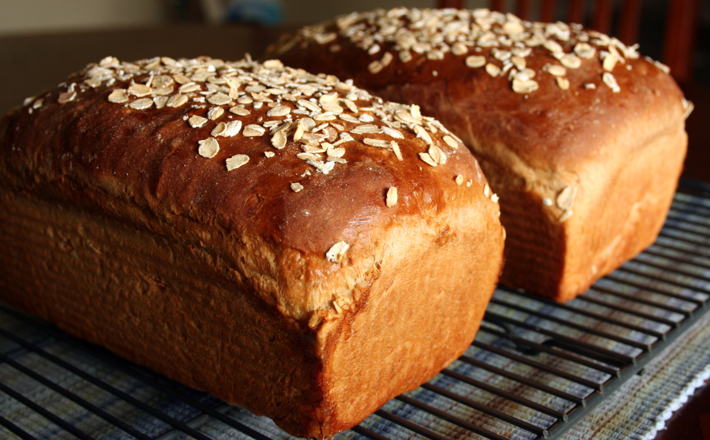 Put oven rack in middle position and preheat oven to 375°F. Lightly brush tops of loaves with some of egg wash and sprinkle with oats, then bake until bread is golden and loaves sound hollow when tapped on bottom, 35 to 40 minutes. (Remove 1 loaf from pan to test for doneness. Run a knife around edge of pan to loosen.)