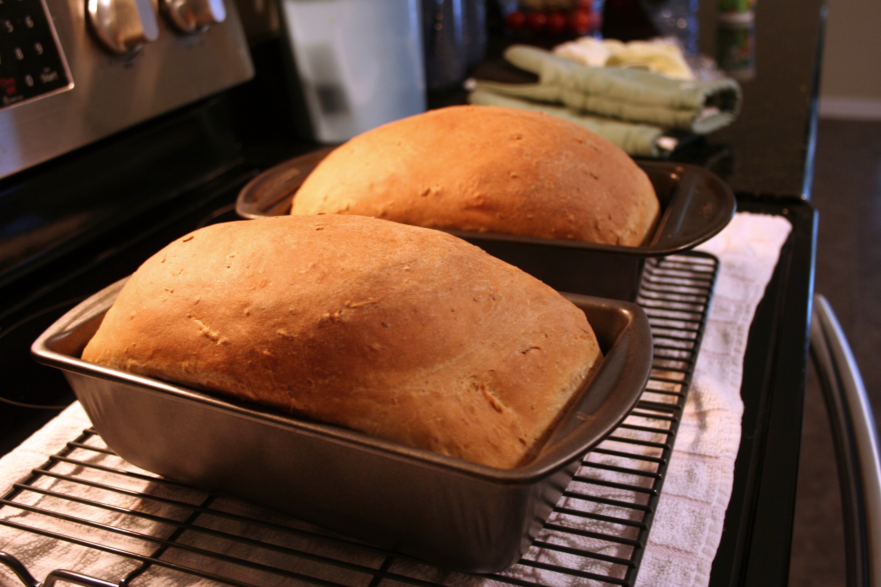 Punch the dough down. Turn onto a floured surface; cover with the bowl and let rise for 15 minutes. Shape into two loaves and let rise for 1 hour in greased 9 x 5 loaf pans.