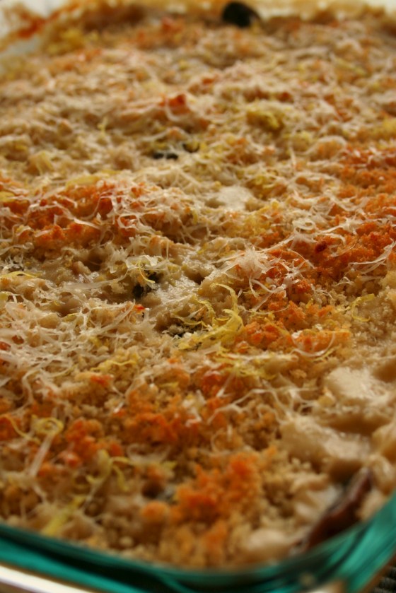 I made a few modifications to this recipe even though it’s not something I usually do the first time around, but I enjoy taking recipes and making them my own. My fridge had a few things that needed to be used up, crimini mushrooms were one of them. I loved the mushrooms with the creamy richness of the pasta and goat cheese and the crunch of the panko topping. I was able to use more of my flavor-packed sun dried tomato pesto in place of the chopped sun dried tomatoes, which we spooned on top of our serving. If you don’t have homemade chicken stock, I recommend buying a good quality boxed stock. I also didn’t use uncooked chicken breasts in this, but added roasted chicken to the dish about half way into the baking time. Also, this recipe makes a lot of food so it would be great for company. Thanks for reading, enjoy!