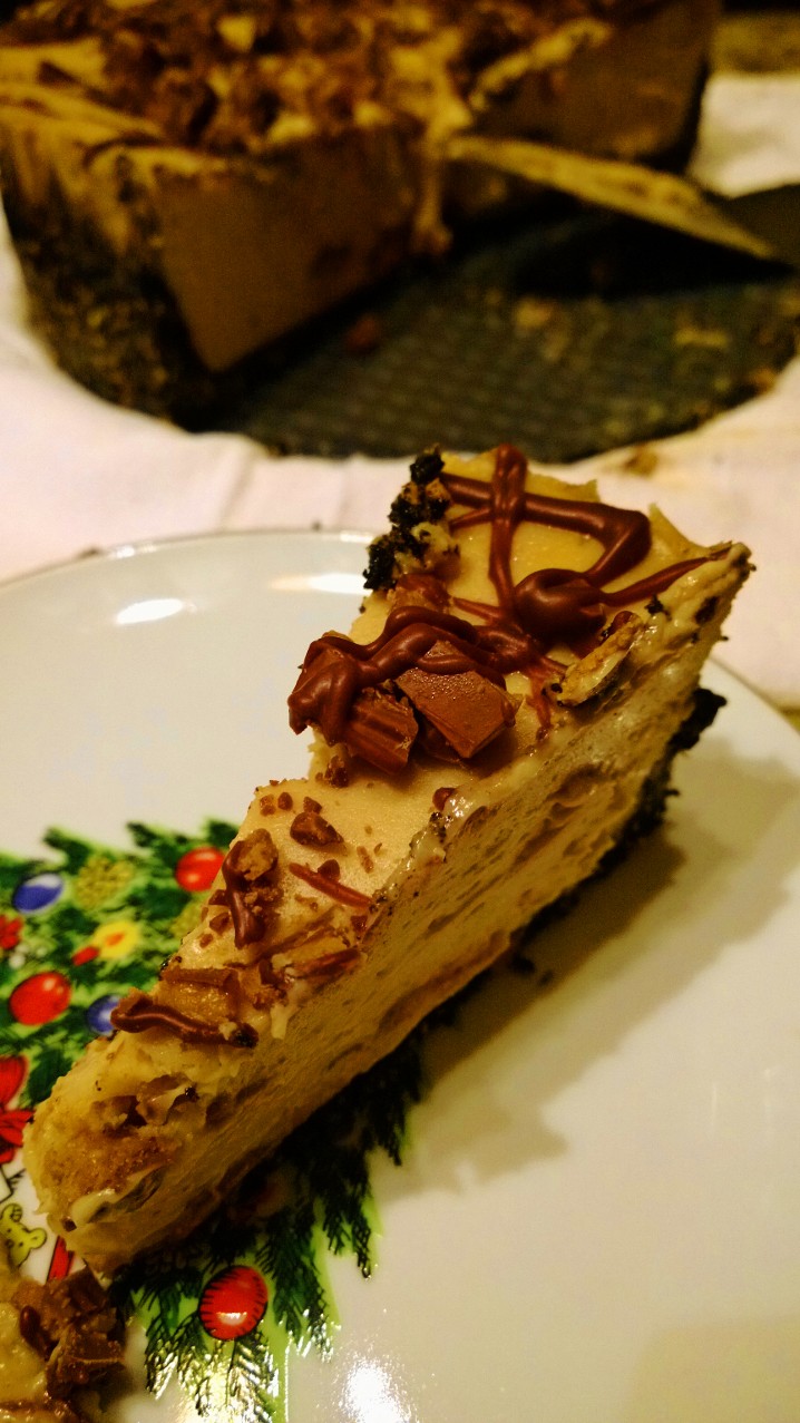 Yeah – definitely not something you would want to make more than once a year! The crust starts out with 24 Oreo cookies and a half stick of butter  – not to mention the roasted peanuts!  There are also 16 Reese’s cups in and on this cake, 2 pounds of cream cheese, 1 cup of peanut butter…Thankfully, there will be at least 10 people who might be willing to try this. I don’t know many people who would turn down a Reese’s 😉