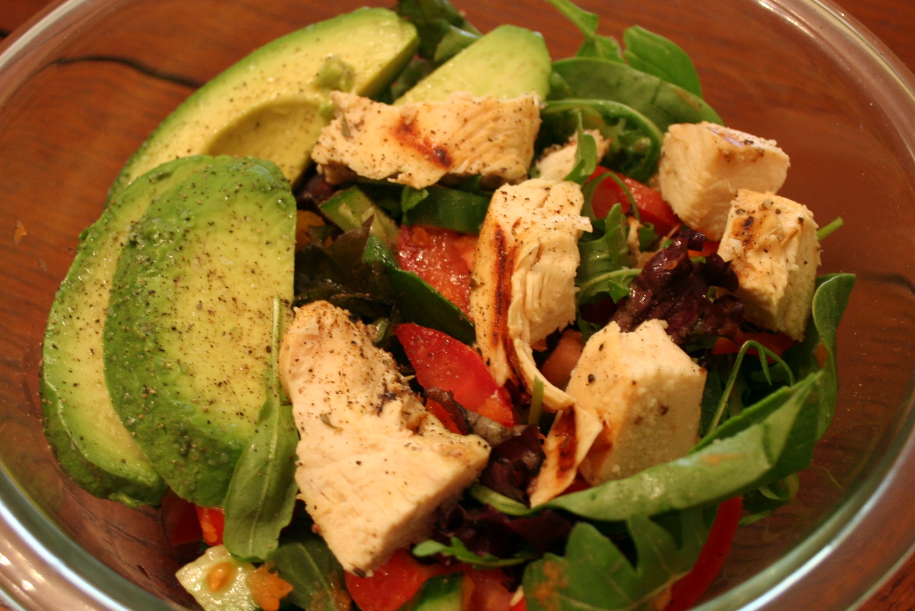 This chicken grilled up moist and flavorful and paired perfectly with the green salad. I added tomato, bell pepper, cucumber, avocado and grated carrot to the greens – the more veggies for me the better! Thanks for reading, enjoy!