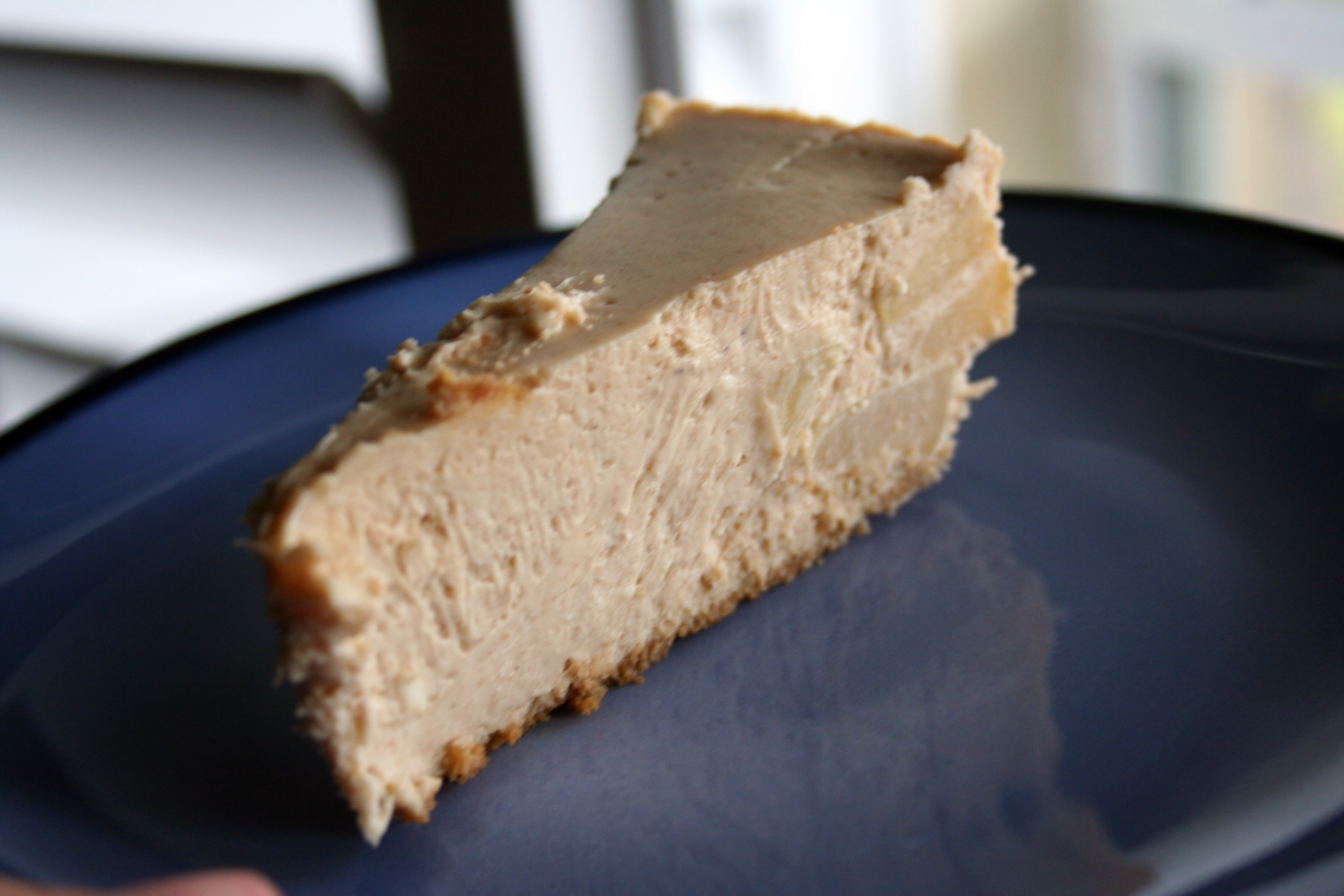 Pour about one-third of the batter into the baked crust. Drain the apples by lifting them off the plate with a slotted spoon or spatula, and spoon them into the pan.  Cover with the remaining batter and, if needed, jiggle the pan to even the top.  Place the springform pan in the roasting pan and pour in enough boiling water to come halfway up the sides of the springform pan.