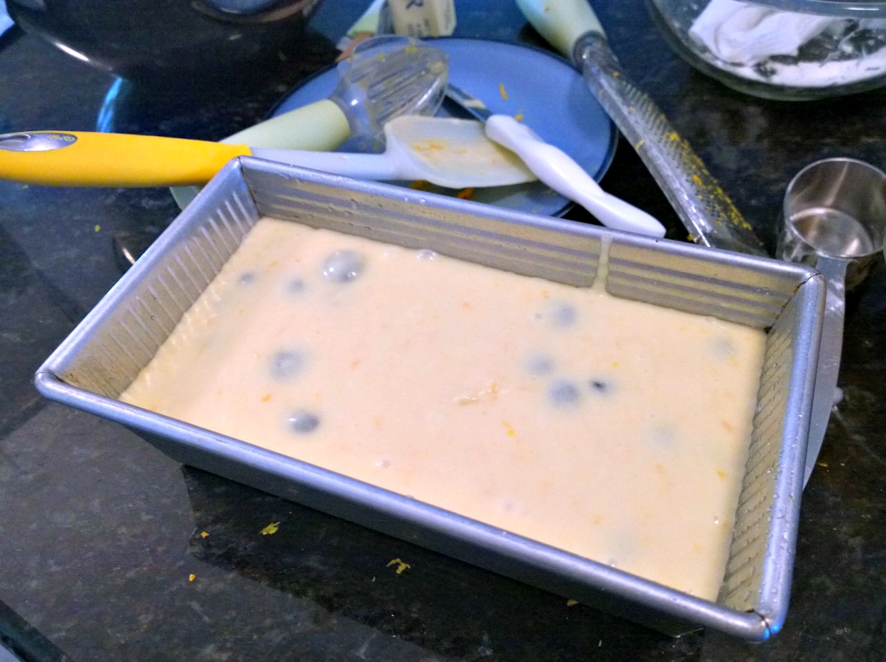 WP_20150421_016                  5. Fold in orange zest, and blueberries into the batter. Pour batter into prepared pan.