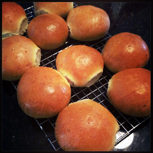 Place the rolls on a parchment lined baking sheet. Lightly spray the tops with oil and cover with plastic wrap to rise until doubled. Repeat these steps on the second half. Preheat your oven to 375.
