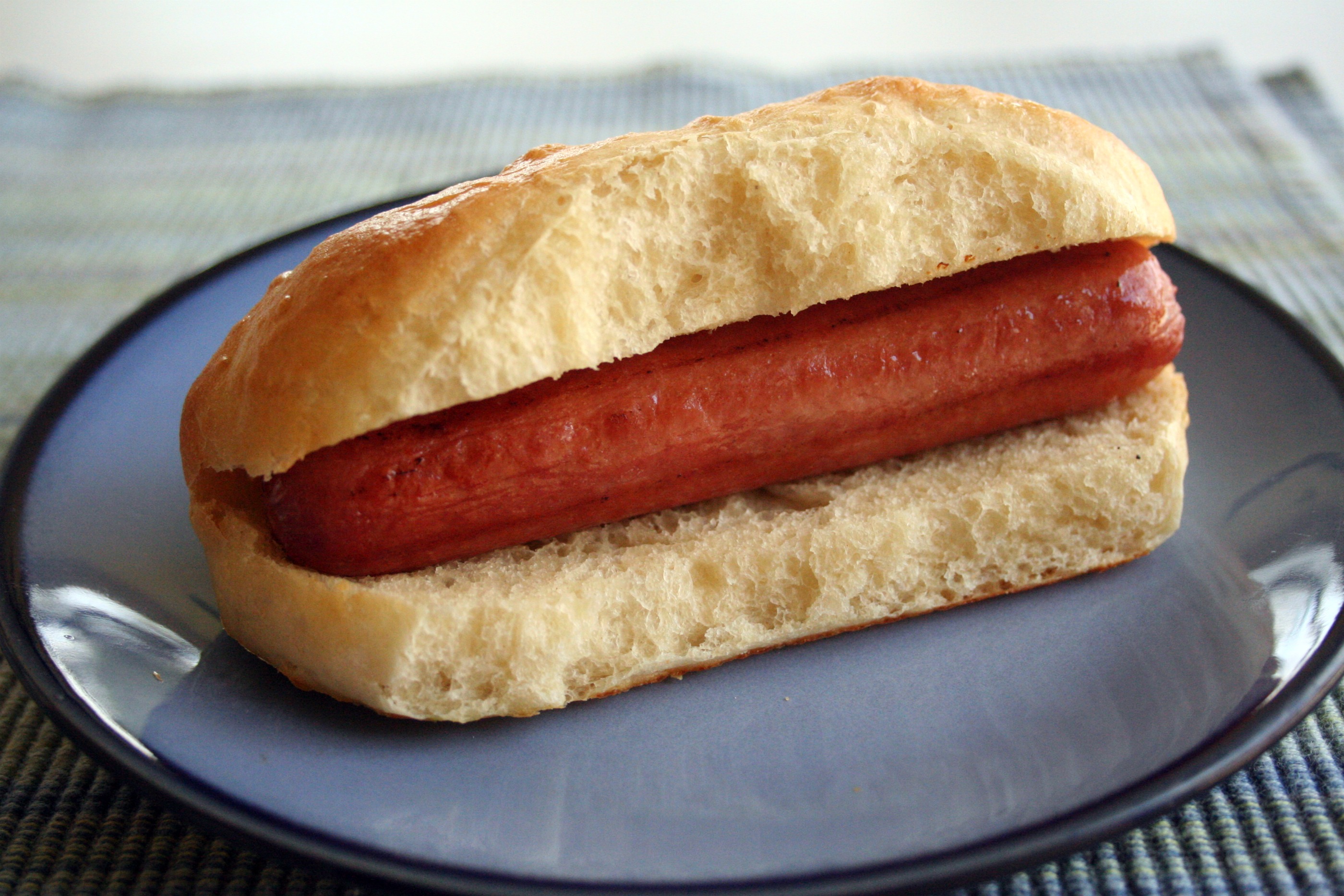 Shape each piece into a ball. For hot-dog buns, roll the balls into cylinders, 4 1/2-inches in length. Flatten the cylinders slightly; dough rises more in the center so this will give a gently rounded top versus a high top.