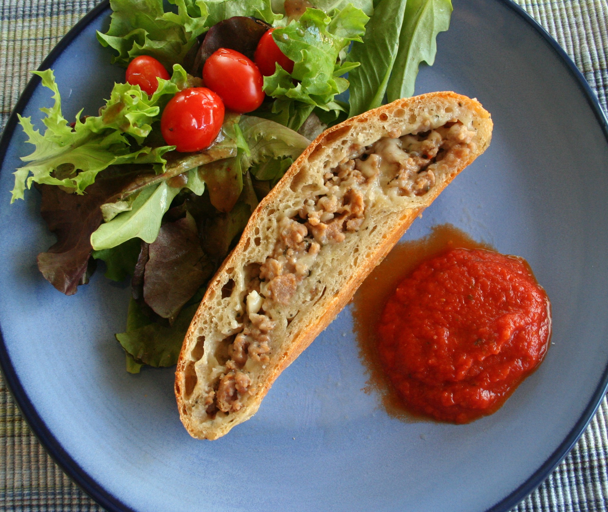Mix all ingredients together and pour over chicken breast. Let marinade for at least 1 hour. Cook chicken using your preferred method – we grilled ours. This is more than enough chicken for one pizza. (I used the leftover chicken for buffalo chicken salad)