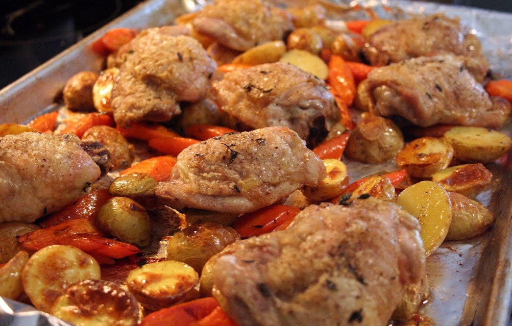 Oven Roasted Chicken Thighs with Carrots and Potatoes