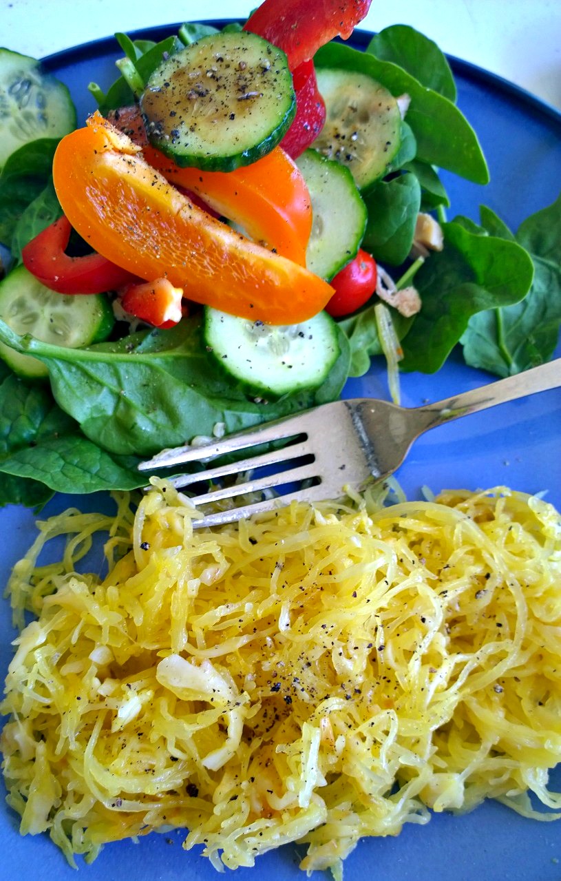 Two weeks ago, Â I purposed to eliminate refined sugars and flour from my diet. The new and kind of drastic change in eating habits has inspired me to try new vegetables and clean eating recipes. The first four days of detox were painful to say the least, but I’m so glad that I have made this change. I have more energy, I’m more clear-headed and I don’t feel sluggish or bloated. This veg is on of my new favorites and I have purchased six in the last two weeks. They’re cheap, versatile and a great substitute for spaghetti noodles.