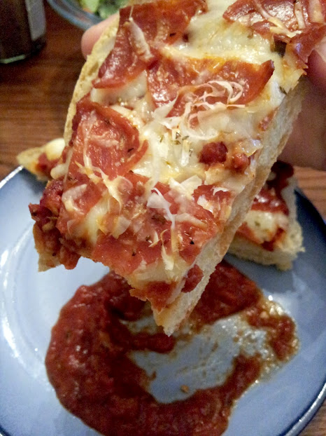 Preheat your oven to 400 degrees and line a baking sheet with foil. Cut your baguette into the size you want your pizzas. I had a half length baguette so I cut it in half (lengthwise) then sliced it open to make four pieces, each about 8 inches long and four inches wide.Top each pizza with about 1/4 cup of sauce and 1/4 cup of shredded cheese. I like to sprinkle on a little extra Italian spices at this point to kick up the flavor. Follow this up with pepperoni or whatever other toppings you are using. Bake the pizzas in the oven at 400 degrees for 10 to 15 minutes or until the cheese is melted and bubbly and the edges of your bread are brown and crispy.